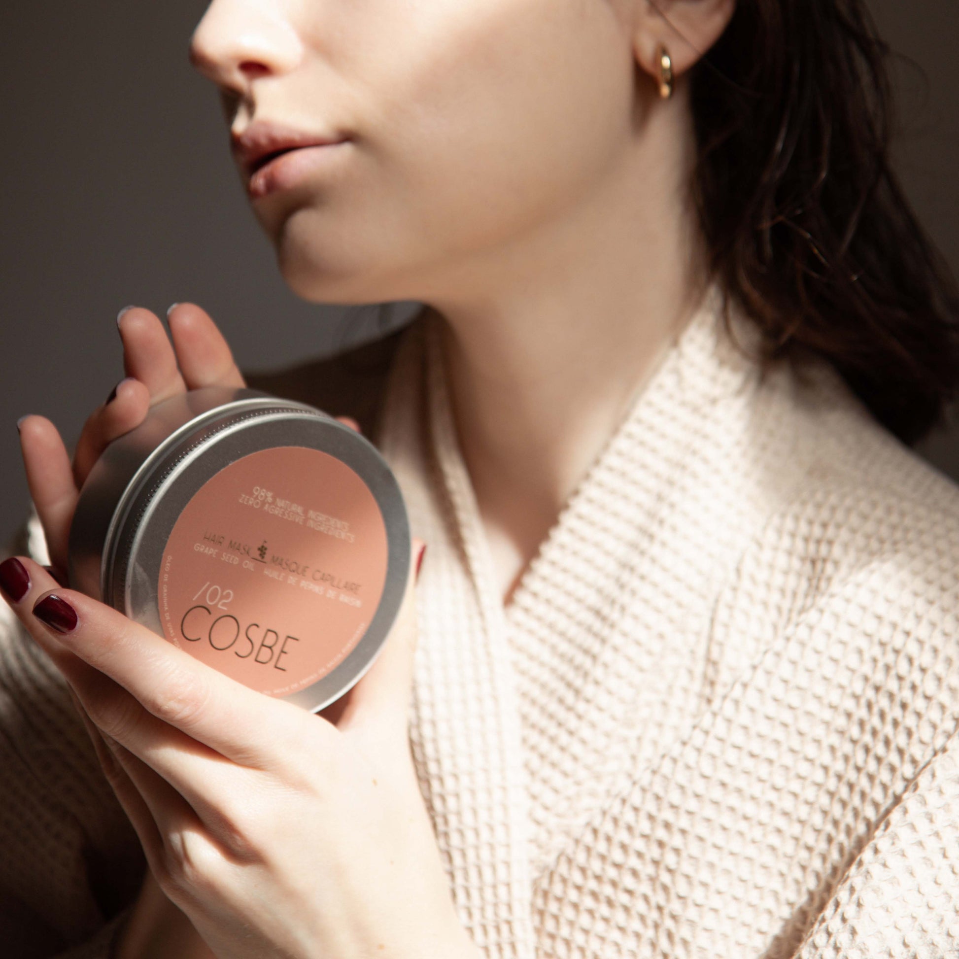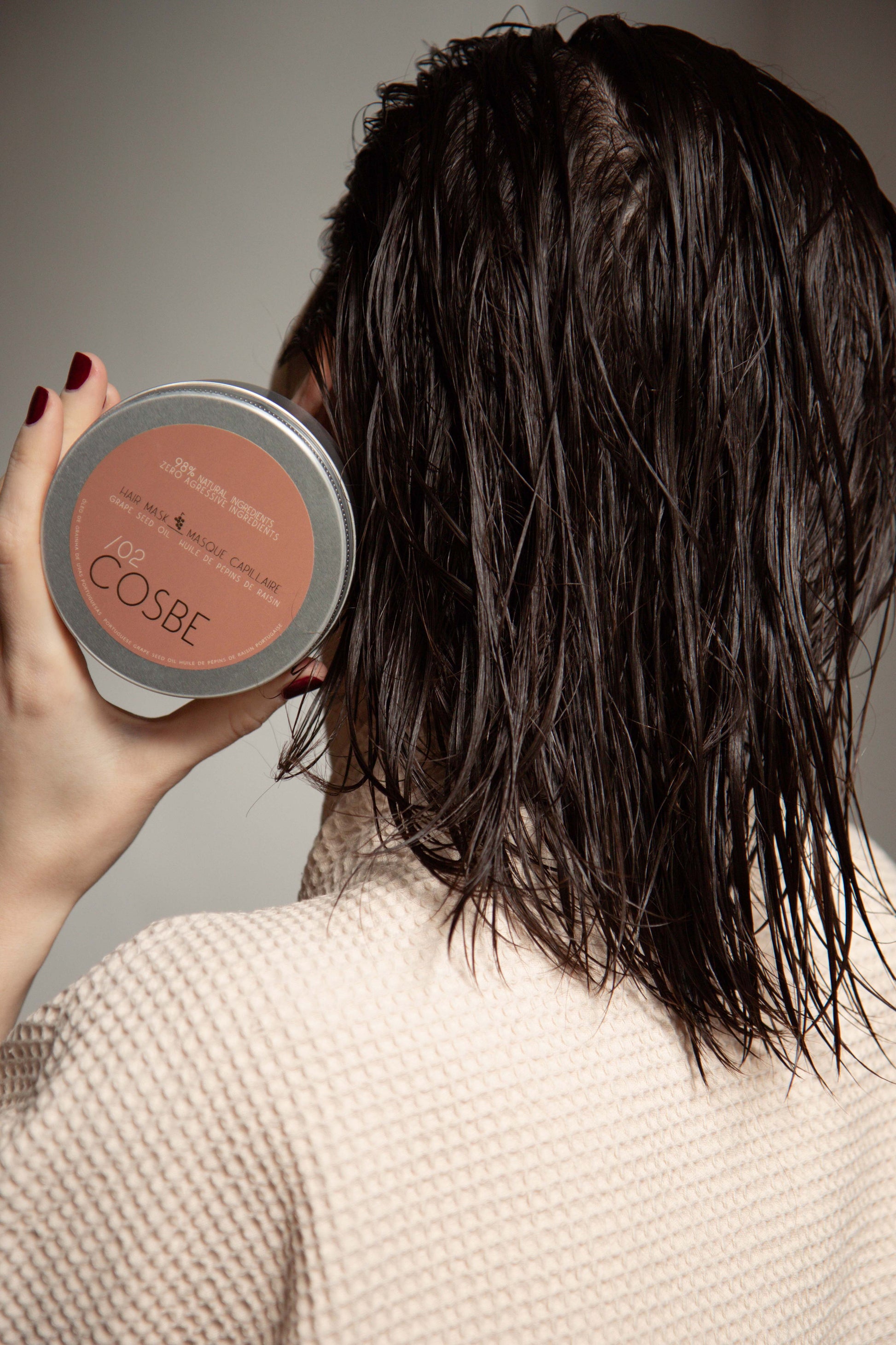 1. Após a lavagem com o shampoo sólido COSBE, aplicar por todo o cabelo húmido/molhado.
