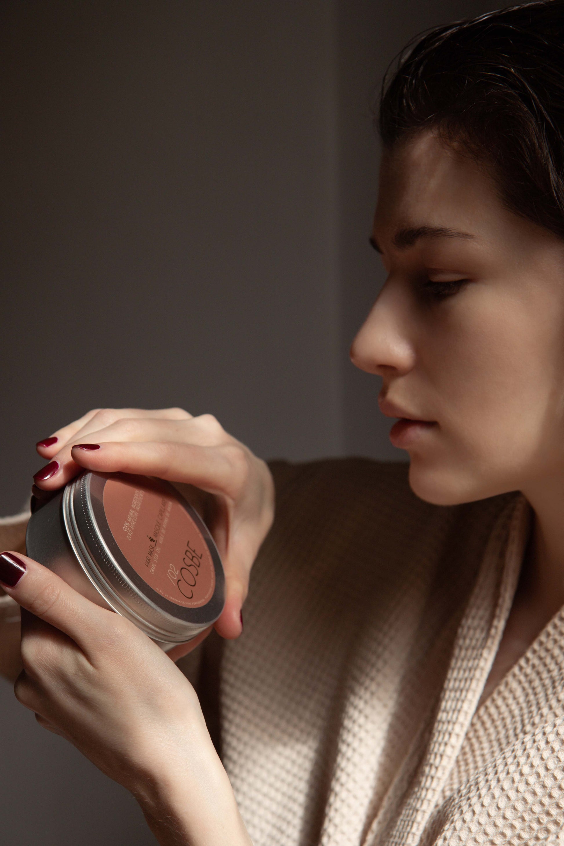 1. Após a lavagem com o shampoo sólido COSBE, aplicar por todo o cabelo húmido/molhado.